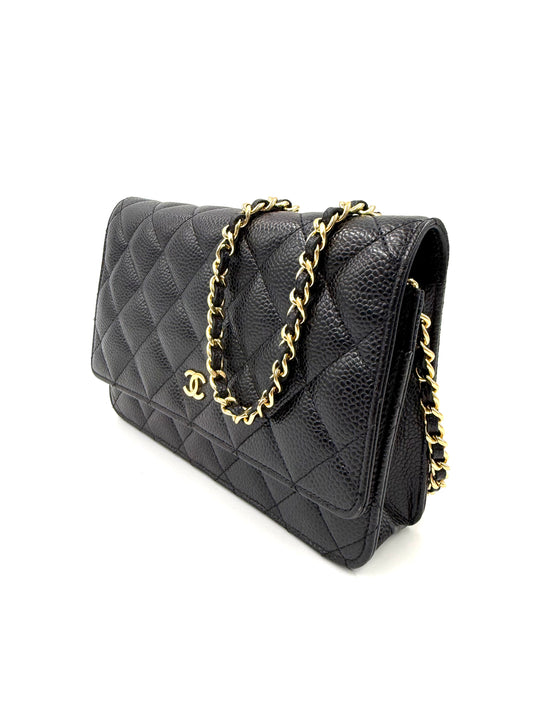 CHANEL Wallet on Chain Caviarleder schwarz GHW