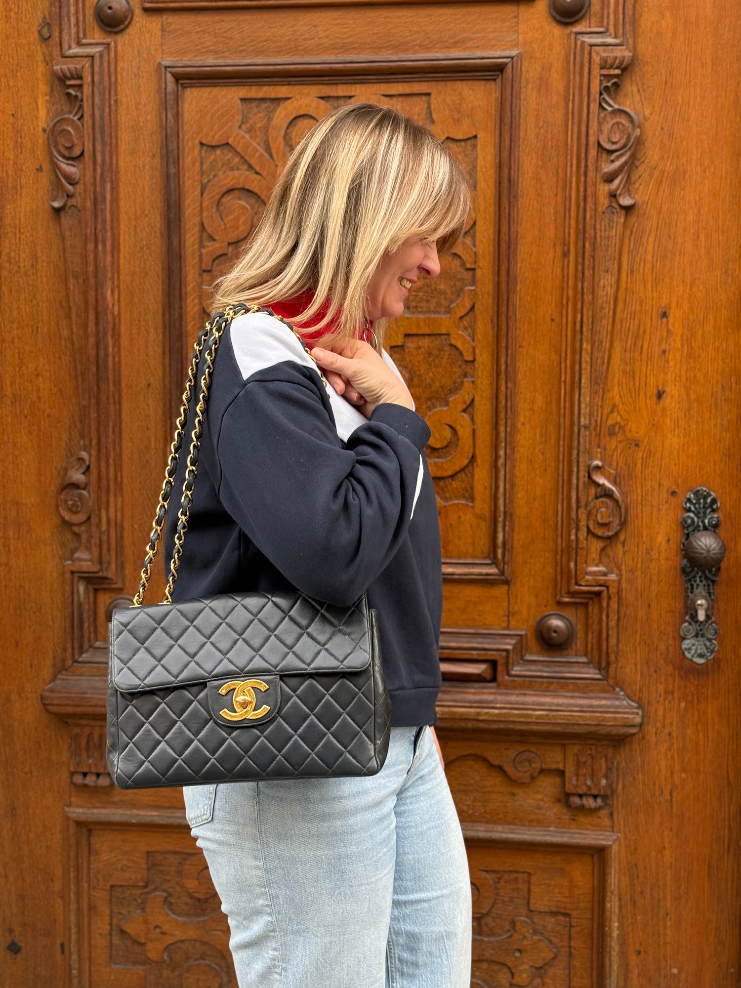 CHANEL Classic Single Flap navy Jumbo Lammleder GHW