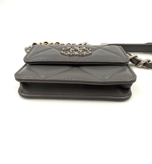 CHANEL 19 Wallet on Chain grau Lammleder