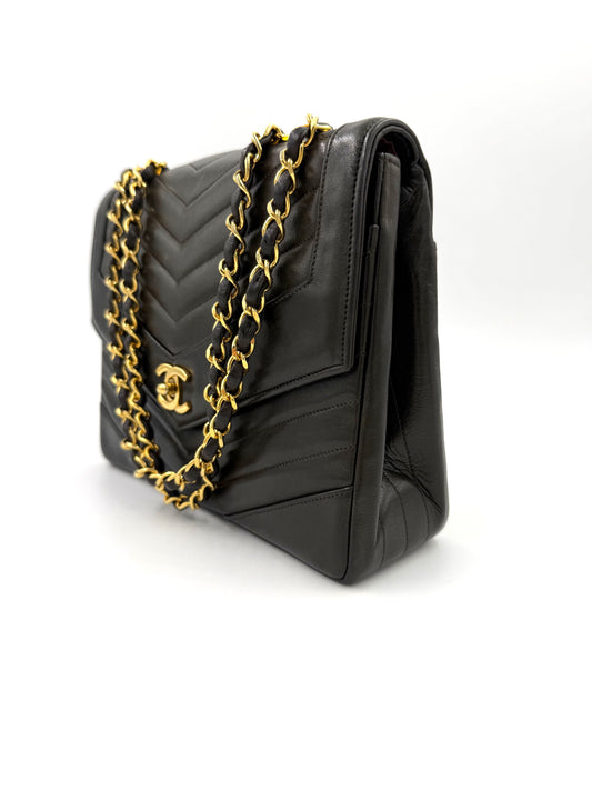 AusverkauftCHANEL Single Flap medium schwarz Lammleder GHW