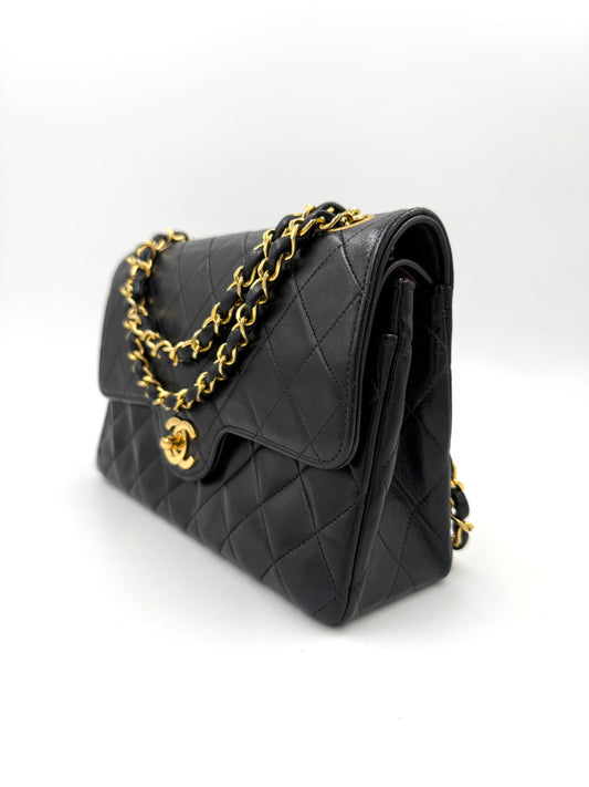 CHANEL Timeless Double Flap medium Lammleder schwarz GHW Vintage