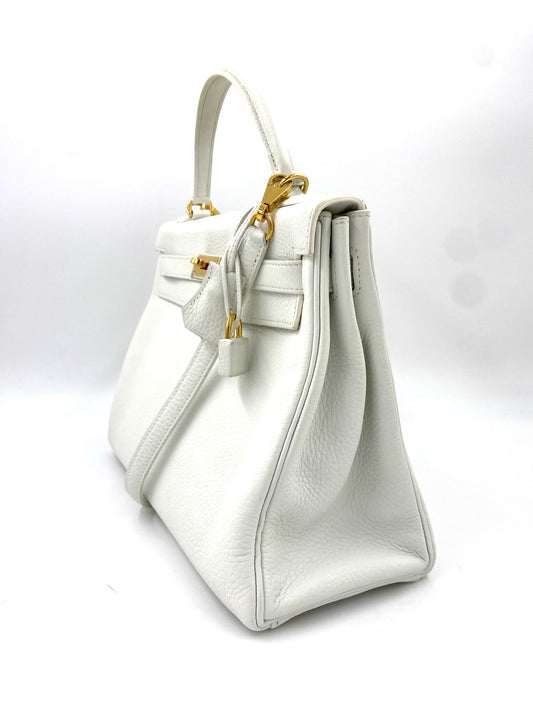 HERMÈS Kelly 32 Retourne Clemence-Leder Blanc mit gold Hardware