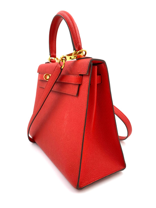AusverkauftHERMÈS Kelly 25 Epsom rouge gold Hardware