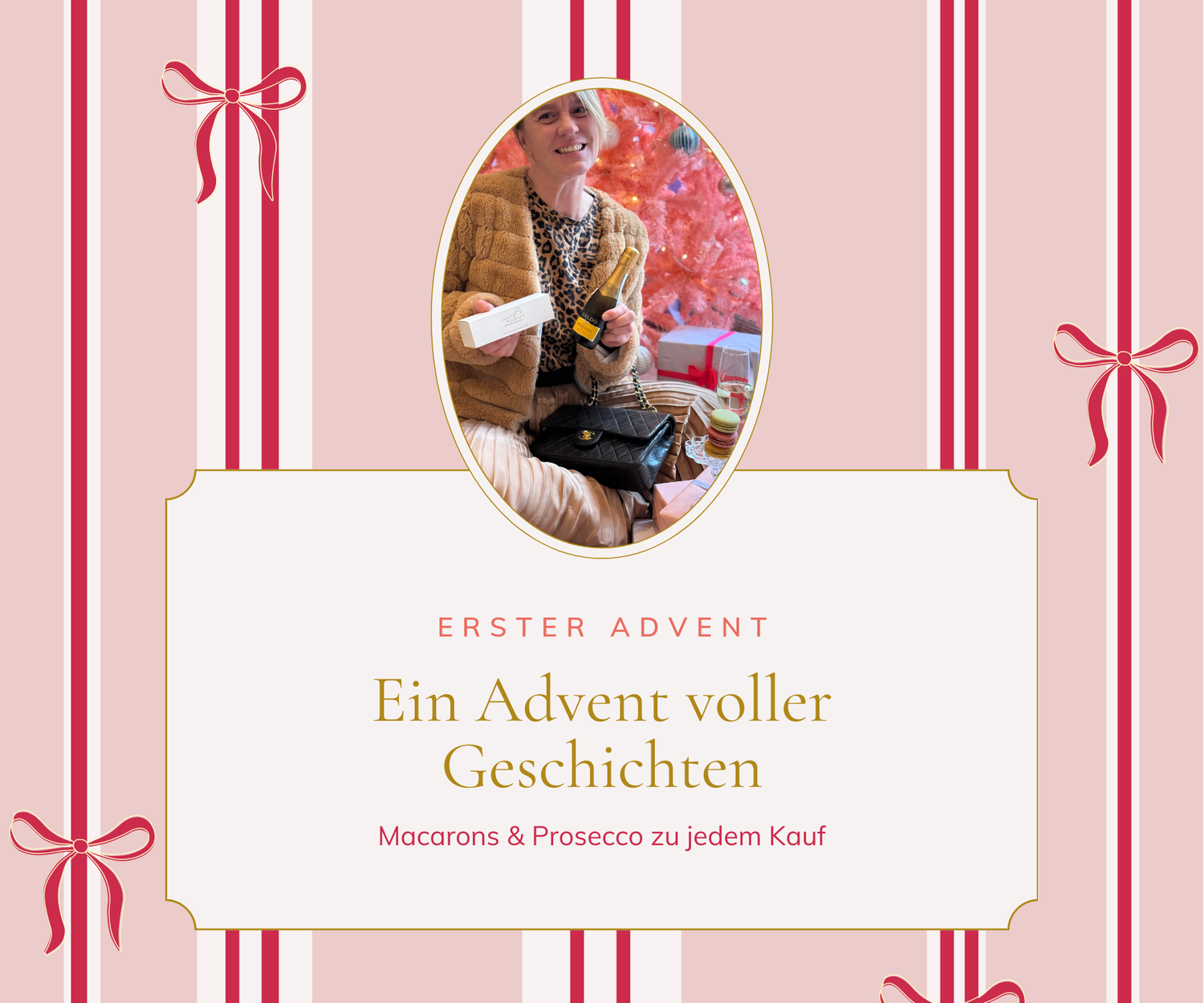 In diesem Sinne wünschen wir dir einen wundervollen 1. Advent! Um diese besondere Zeit des Jahres zu feiern, haben wir schon heute ein kleines Geschenk für dich vorbereitet. In der kommenden Woche erhältst du bis Samstag, 06.12. zu deinem Einkauf – sowohl online als auch in unserer Boutique – eine kleine Flasche Prosecco und 6 feine Macarons, solange der Vorrat reicht. Dieses köstliche Duo sorgt für festliche Stimmung und süße Genussmomente. Lass dich von den Aromen der Macarons verzaubern, genieße den Prosecco in geselliger Runde und freue dich über deine neue Lieblingstasche! Suche dir deine Traumtasche am besten direkt schon aus!