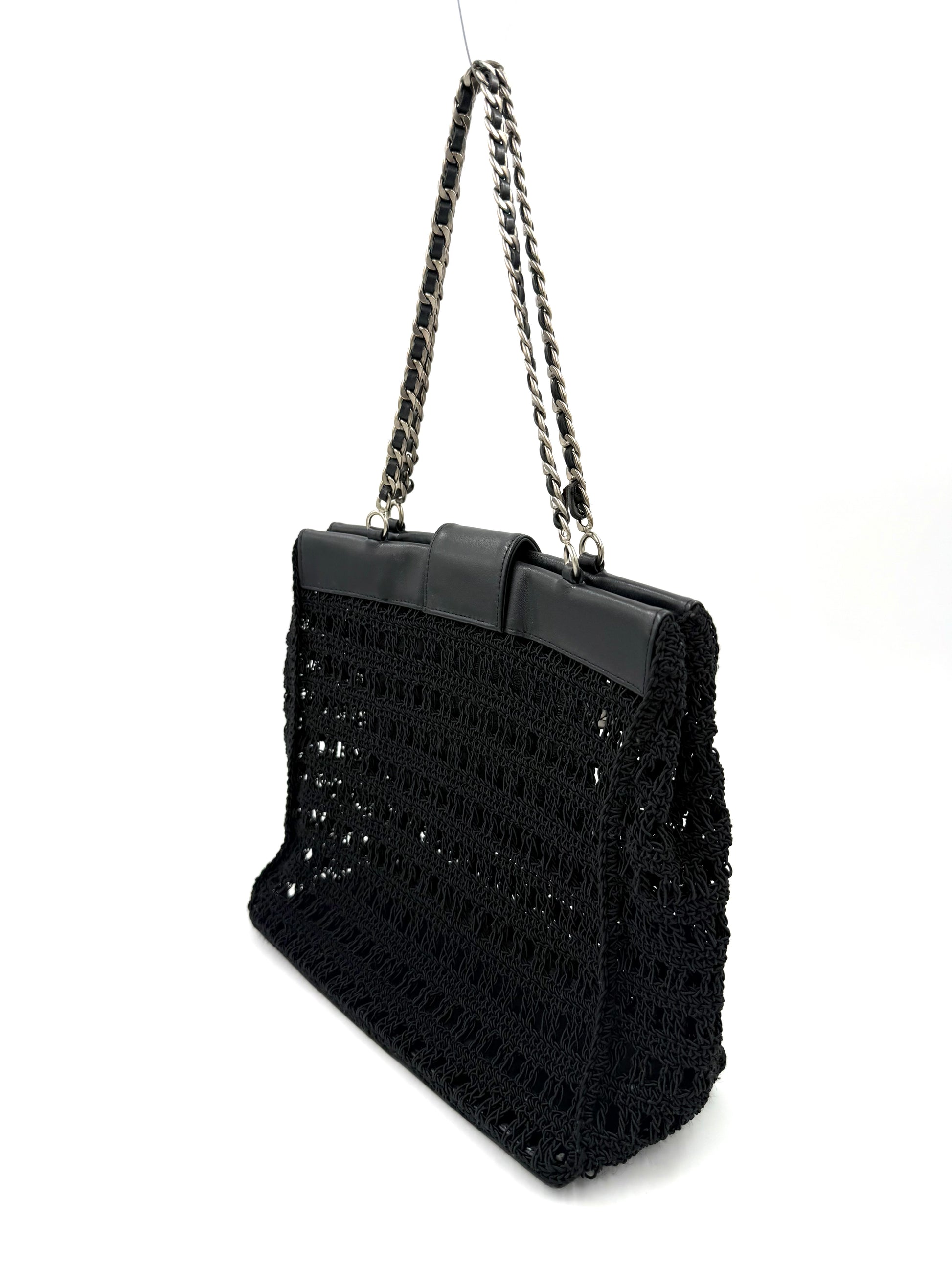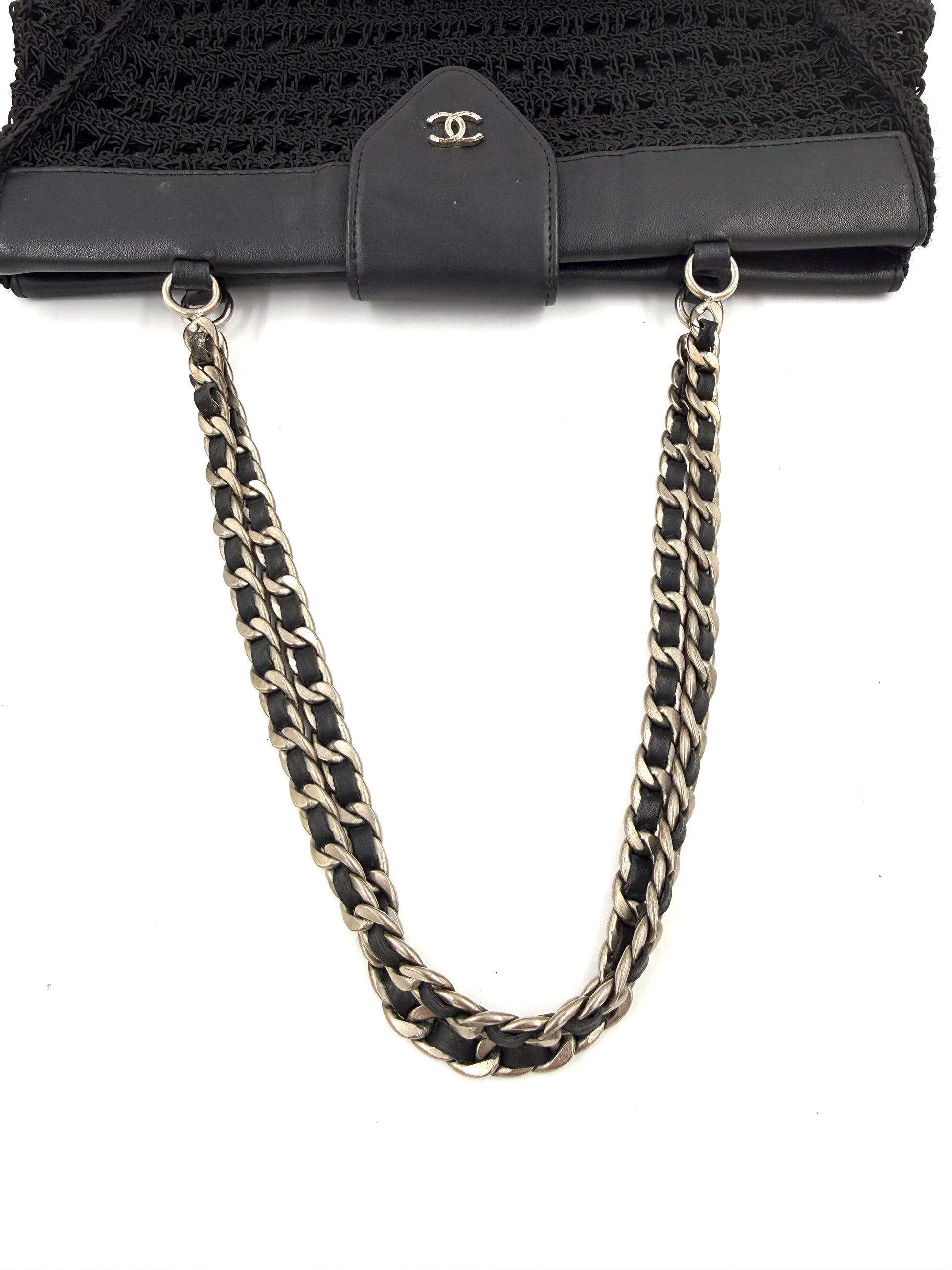 CHANEL Vintage CC Shoulder Crochet Woven schwarz