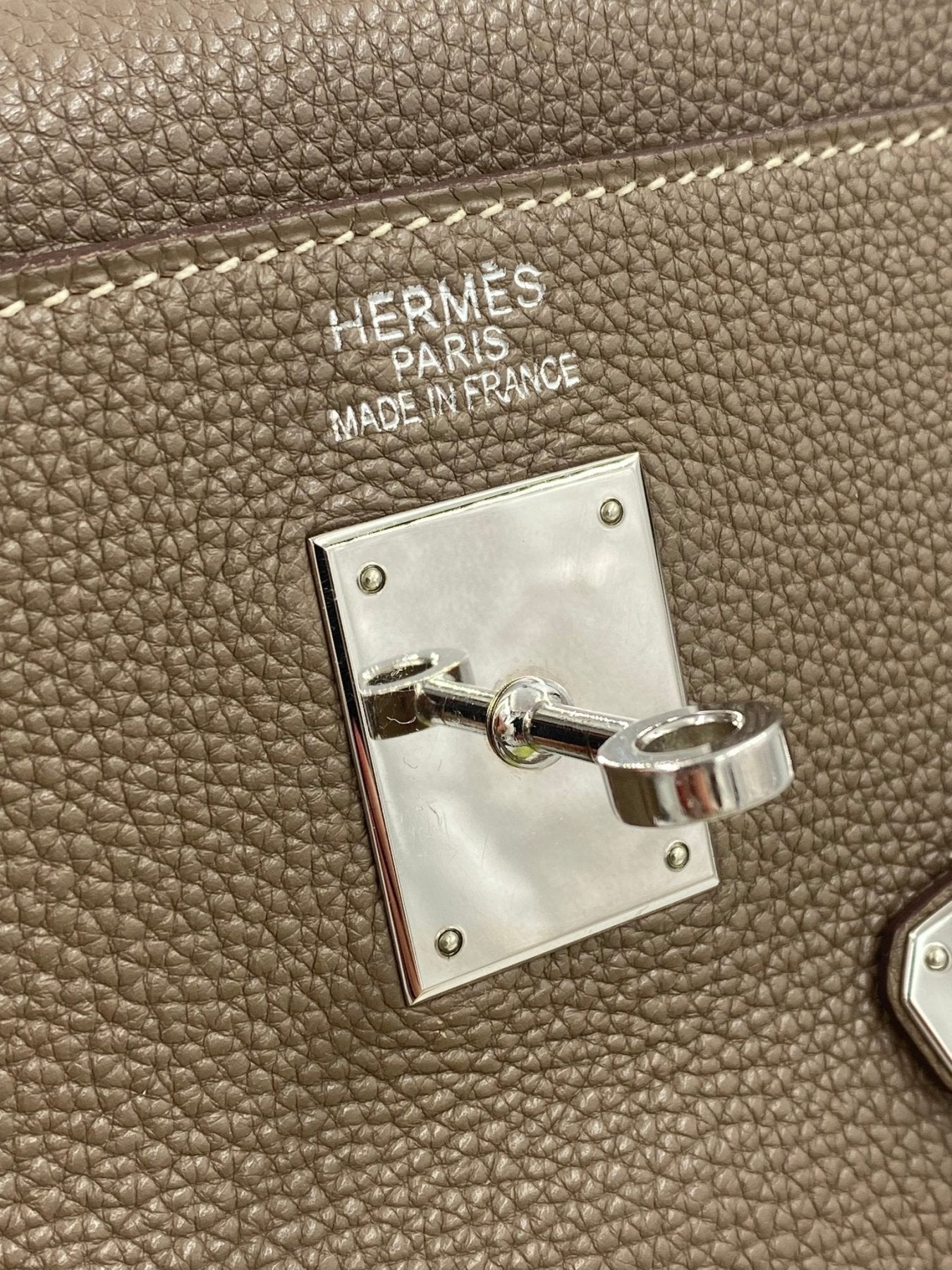 HERMÈS Kelly 35 Togo Etoupe mit Schulterriemen