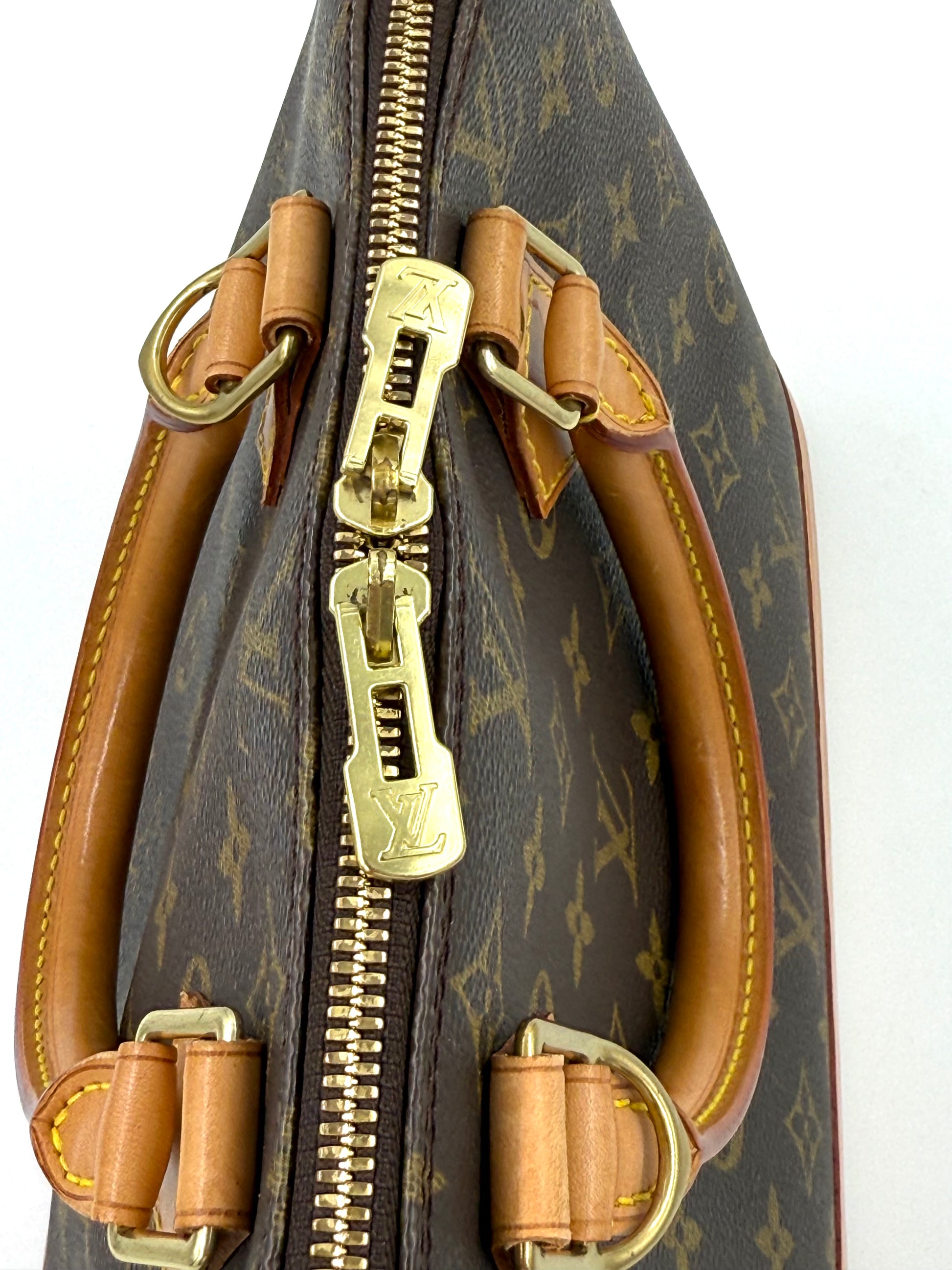 Die Vintage Louis Vuitton Alma ist die perfekte Allround-Tasche – ob im Büro, beim Shopping oder auf Reisen. Ihr robustes Canvas-Material trotzt den Herausforderungen des Alltags und macht sie zu einer zuverlässigen Begleiterin. Die Tragemöglichkeiten sind vielfältig: klassisch in der Hand, elegant an der Armbeuge oder – mit einem zusätzlichen Schulterriemen deiner Wahl – kannst du sie bequem über der Schulter oder crossbody tragen. Die Griffösen am Henkel machen das Anbringen eines Riemens (ob Original von Louis Vuitton oder von einem anderen Hersteller) kinderleicht.