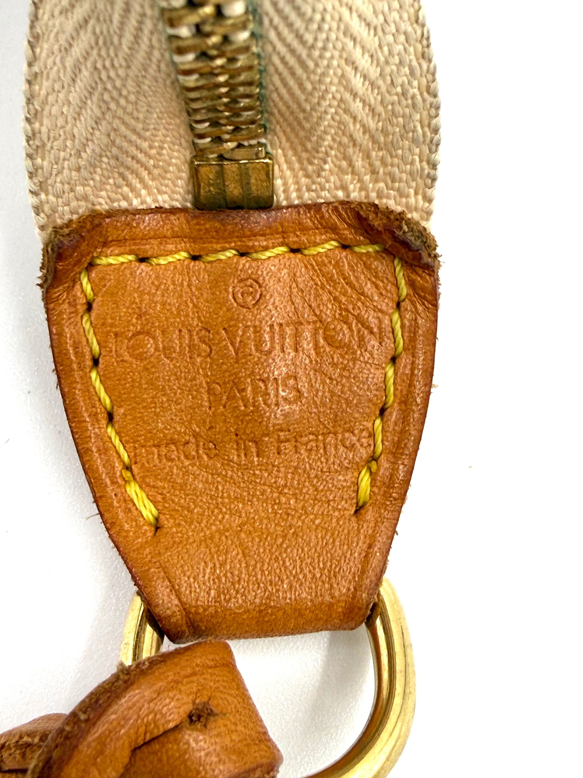 Dieses hübsche Einzelstück der Louis Vuitton Pochette Accessoires ist ein wahres Schmuckstück der 2000er Jahre, das nun Comeback feiert. Diese wunderschöne Tasche, ist das Ergebnis der Zusammenarbeit zwischen dem französischen Luxushaus und dem japanischen Künstler Takashi Murakami. Das Multicolor Design ist bis heute eines der beliebtesten Kreationen von Louis Vuitton. Denn das lebendige Multicolor Muster auf dem schwarzen Hintergrund macht einfach gute Laune!