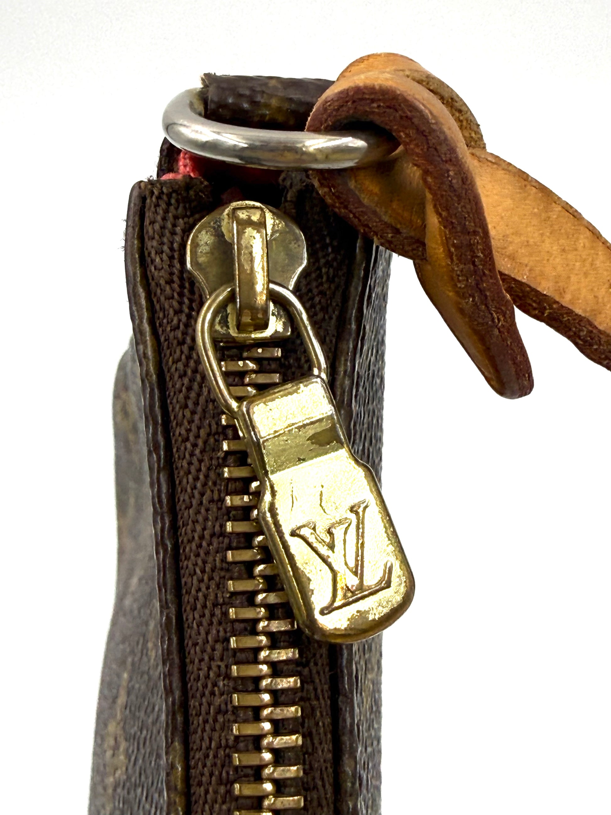 Diese hübsche Louis Vuitton Pochette Accessoires im V-Design pink, welches an der Volez, Voguez, Voyagez, Valises, Vuitton“ Werbung der 1960er Jahre inspiriert ist, lässt sich toll mit verschiedenen Outfits kombinieren – von lässigen Jeans und Sneakers bis hin zu eleganten Kleidern. Das Hauptfach der Pochette Accessoires ist so geräumig, dass ein Smartphone, Schlüssel, Kartenetui und auch noch ein Lipgloss locker reinpasst. Ein Reißverschluss sorgt dafür, dass alles sicher verstaut ist.